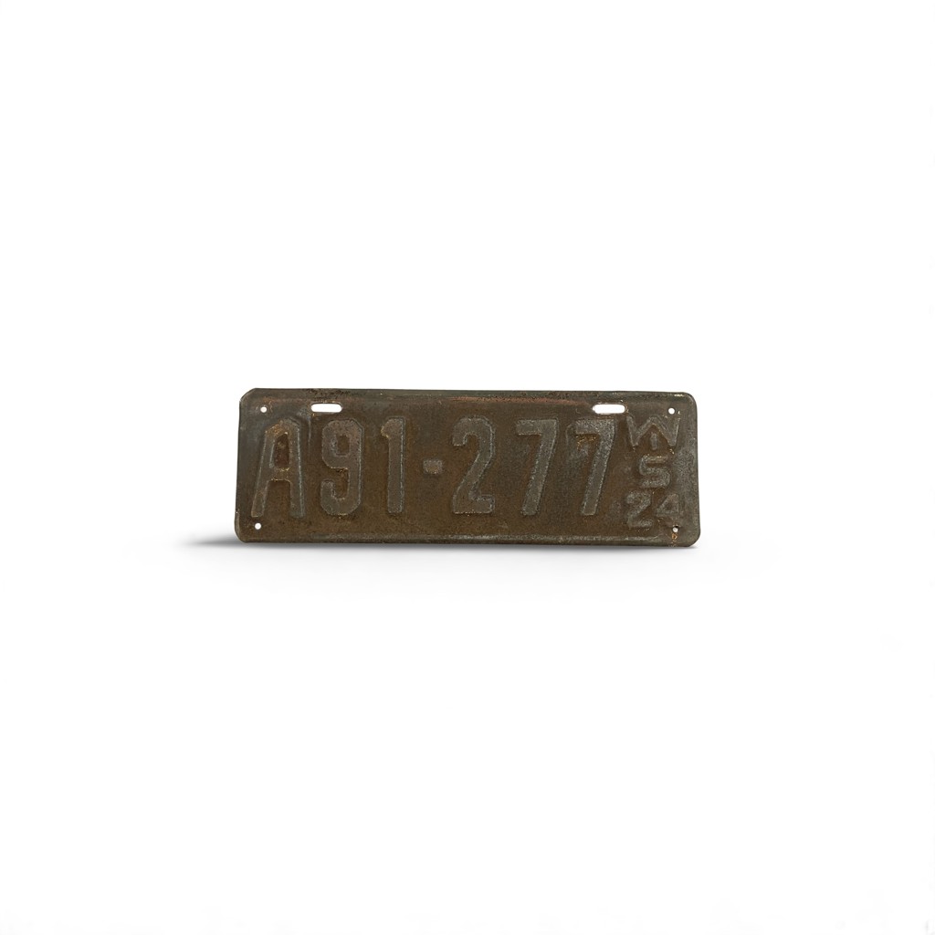 1924 WISCONSIN LICENSE PLATE A91 277 (1 OF 2) SEE THE OTHER IF LOOKING FOR PAIR
