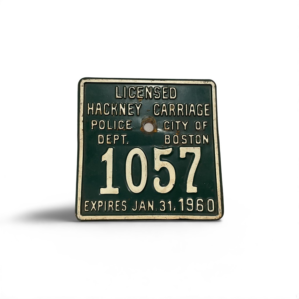 1960 CITY OF BOSTON LICENSE PLATE 1057 LICENSED HACKNEY POLICE DEPT CARRIAGE