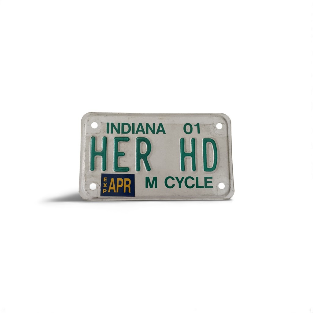 2001 INDIANA VANITY MOTORCYCLE LICENSE PLATE HER HD HARLEY DAVIDSON MOTORCYCLES